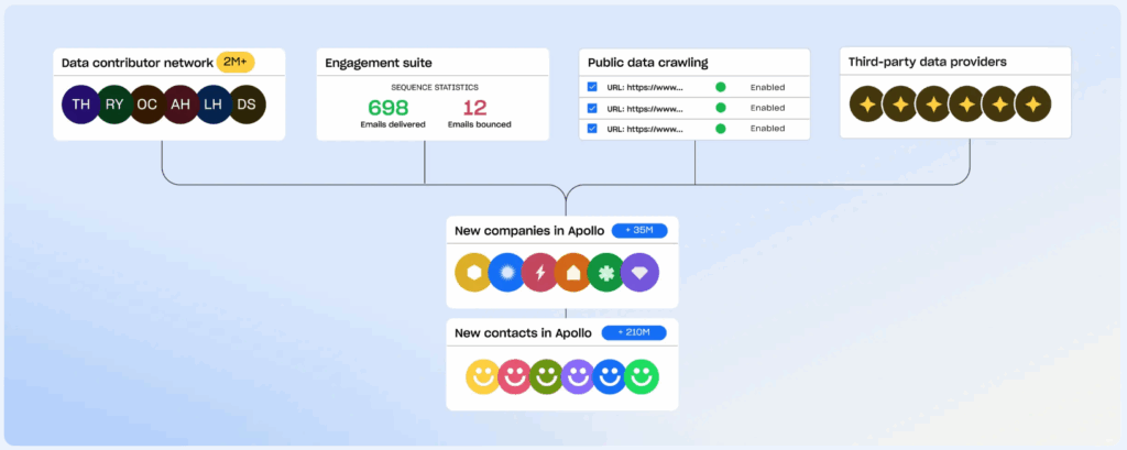 Apollo.io sources data from multiple places:
