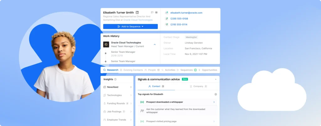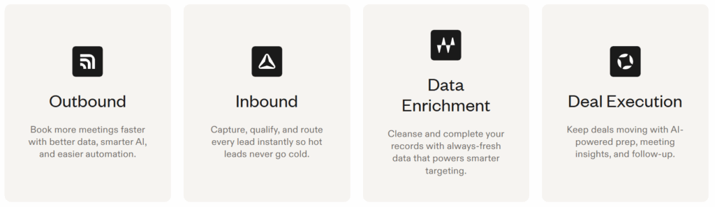 | All-in-one platform. Data + sequences + dialer + analytics + CRM sync. It replaces 3-4 tools and saves serious money. | Per-user pricing. Costs add up fast for large teams. The Organization plan requires minimum 3 users. |