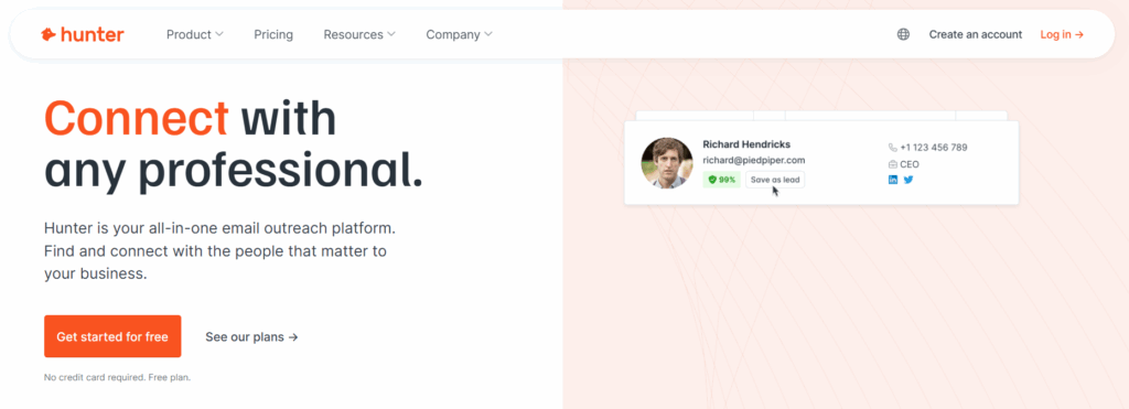 - Hunter.io is a specialized email finder tool. It focuses on doing one thing exceptionally well—finding and verifying professional email addresses. It’s built for researchers, recruiters, and solo operators who need accuracy over automation.